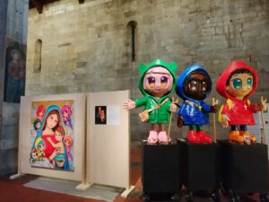 Così nell’ambito di Lucca Comics & Games 2025 l’Arcidiocesi di Lucca con il Dicastero dell’Evangelizzazione Sezione per le questioni fondamentali dell’evangelizzazione nel mondo e la collaborazione di Lucca Crea, insieme all’artista Simone Legno, co-fondatore e direttore creativo di Tokidoki, ideatore di Luce&Friends, mascotte del Giubileo 2025, hanno promosso l’iniziativa PUNTILUCE, che ha due sedi espositive: il piazzale antistante il Palazzo Arcivescovile, dove è collocato il gonfiabile di Luce, e la chiesa di San Cristoforo in via Fillungo, che ospita una esposizione di tavole inedite di Simone Legno e un laboratorio artistico per bambini e ragazzi e dove viene realizzato un live painting sul tema di Luce. Tema della mostra è la rivisitazione in chiave contemporanea di celebri immagini mariane di diverse parti del mondo.