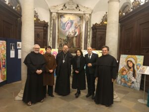 Da sinistra, padre Attilio Carrella OSM, Olimpia Niglio, mons. Paolo Giulietti, Makiko Inomata, Emanuele Albano, padre Paolo Orlandini OSM