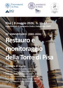 A 25 anni dal completamento delle opere di stabilizzazione della Torre di Pisa (maggio 2001- maggio 2026), il Dipartimento di Ingegneria Civile e Architettura dell’Università di Pavia e il Dipartimento di Ingegneria Civile e Industriale dell’Università di Pisa, venerdì 8 maggio 2026, si incontrano per promuovere una giornata di studio finalizzata a condividere le ricerche e le attività di monitoraggio in corso a cura dell’ateneo pisano e così commemorare anche questo importante anniversario.